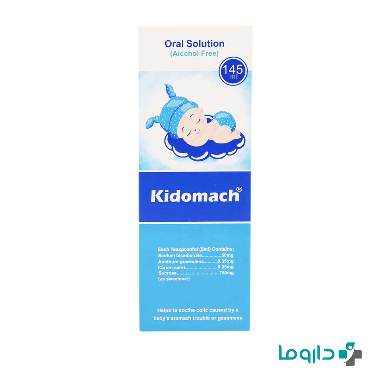 محلول خوراکی کیدومک خوارزمی با داشتن روغن شوید و روغن زیره سیاه برای تسکین گریههای ناشی از دل درد و نفخ نوزادان مناسب است. این شربت برای نوزادان تا یک سال مناسب است.