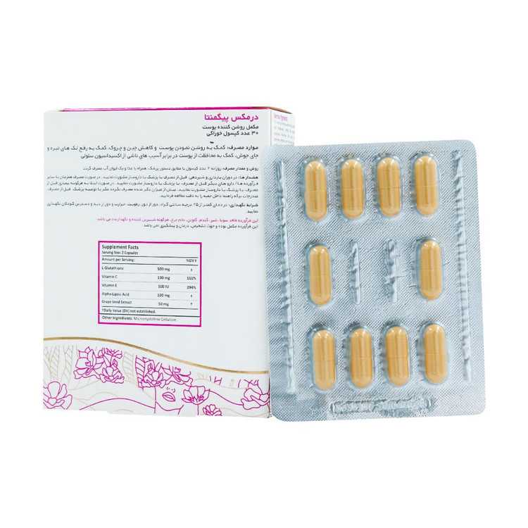 ترکیبات اصلی کپسول پیگمنتا شامل موادی مانند عصاره دانه انگور، آلفا لیپوئیک اسید، گلوتاتیون و ویتامینهای C و E است. این ترکیبات به روشهای مختلفی به پوست کمک میکنند، از جمله: