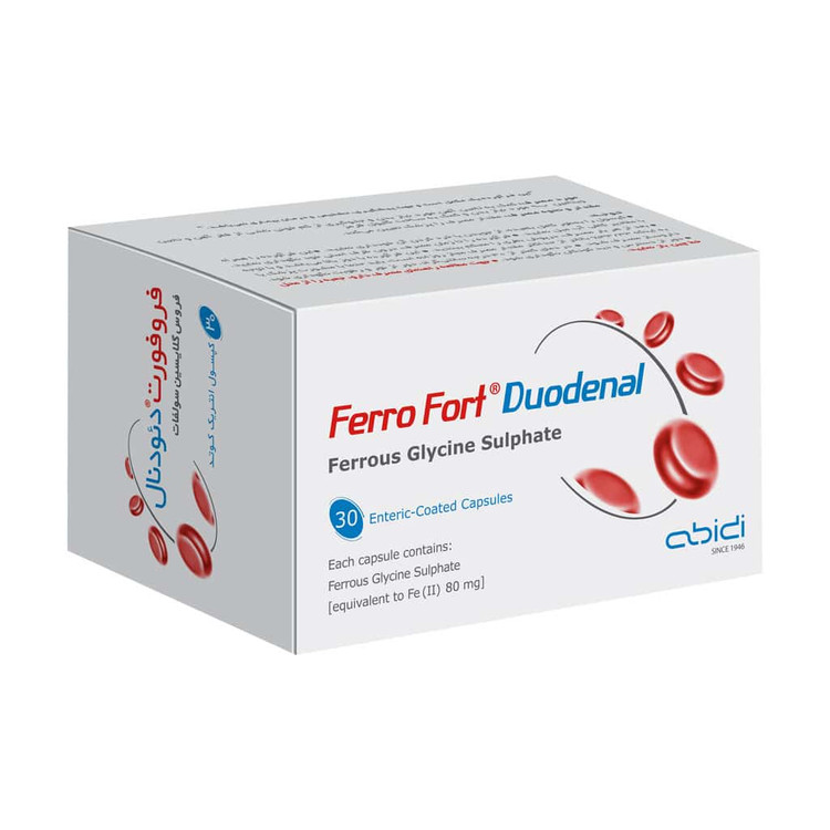 فروفورت دئودنال یک مکمل غذایی حاوی آهن به فرم فروس گلایسین سولفات بوده که به طور ویژه برای درمان کم خونی ناشی از کمبود آهن در بدن طراحی شده است. آهن موجود در مکمل آهن نقش مهمی در تولید گلبولهای قرمز خون و انتقال اکسیژن به سلولها ایفا میکند و در کم خونی ناشی از فقر آهن موثر عمل میکند. از طرفی افرادی که دارای بیماری کم خونی هستند از کاهش انرژی و خستگی زیاد شکایت دارند، مصرف فروفورت دئودنال میتواند، مشکلات ناشی از این بیماری را کاهش دهد.