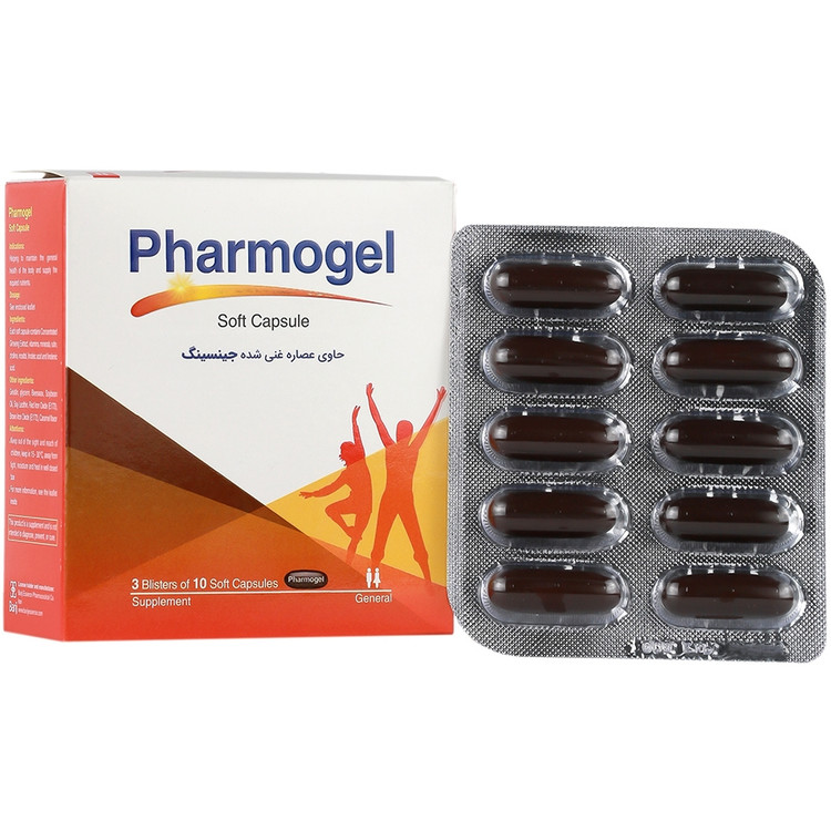 فارموژل، یک مکمل تغذیهای غنی از ویتامینها، مواد معدنی، DMAE و عصاره جینسینگ تغلیظ شده است. این محصول به منظور کمک به حفظ سلامت کلی بدنی و فراهم کردن ریز مغذیهای مورد نیاز فرموله شده است. فارموژل به فرم کپسول و در بسته بندیهای 30 عددی (3 بلیستر 10 عددی) به بازار عرضه میشود. کپسول فارموژل توسط شرکت باریج اسانس و تحت برند باری ویتال تولید میشود. مواد تشکیل دهنده کپسول Pharmogel از DSM سوئیس است. قابلیت بلع آسان از مزایای کپسول نرم فارماژل به حساب میآید.